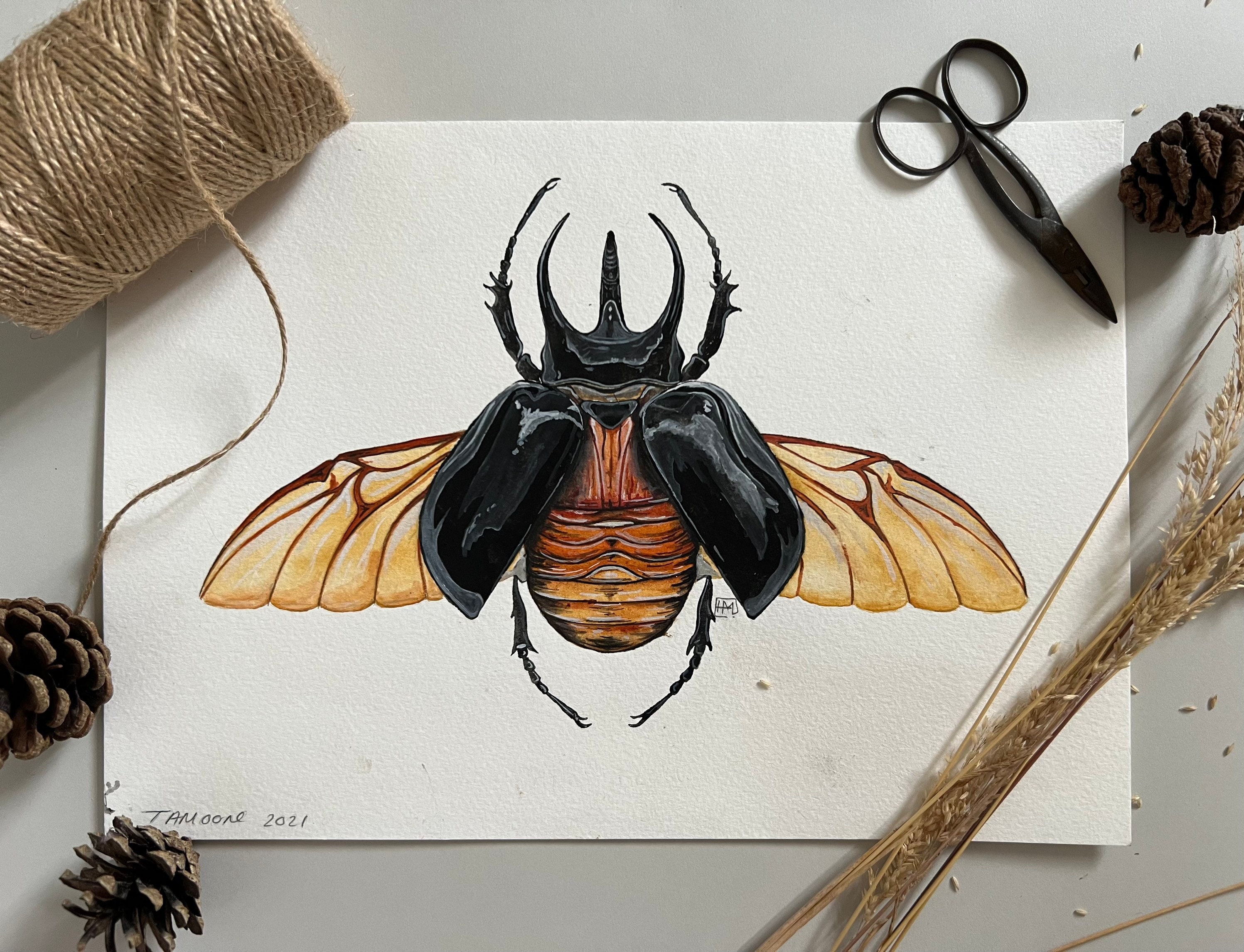 Original Atlas Beetle Watercolour Painting Etsy Uk